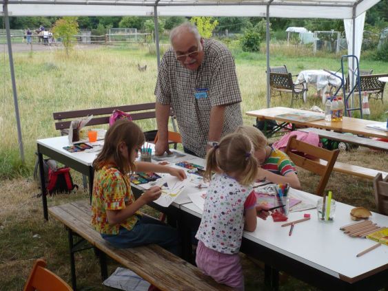 Veranstalter und Teilnehmer: Nehemiahof, Künstler, Familien, Kinder, bis zu 50 Personen insgesamt. Fachkundige Anleitung von Groß und Klein bei künstlerischen Tätigkeiten. Bildhauer Klaus Pollack modelliert mit verschiedenen Stoffen, Susanne Korte und Sylvia Jung geben Anleitung beim Töpfern, Werner Zimmermann gibt Anleitung beim Freihandzeichnen und Malen mit Aquarell- und Ölfarben.