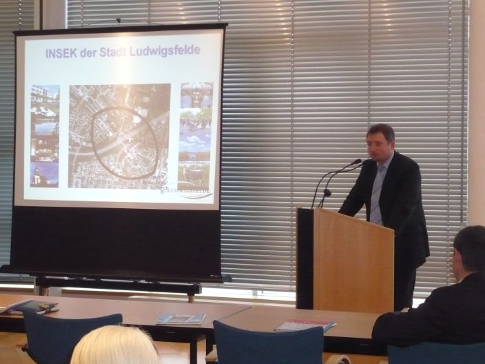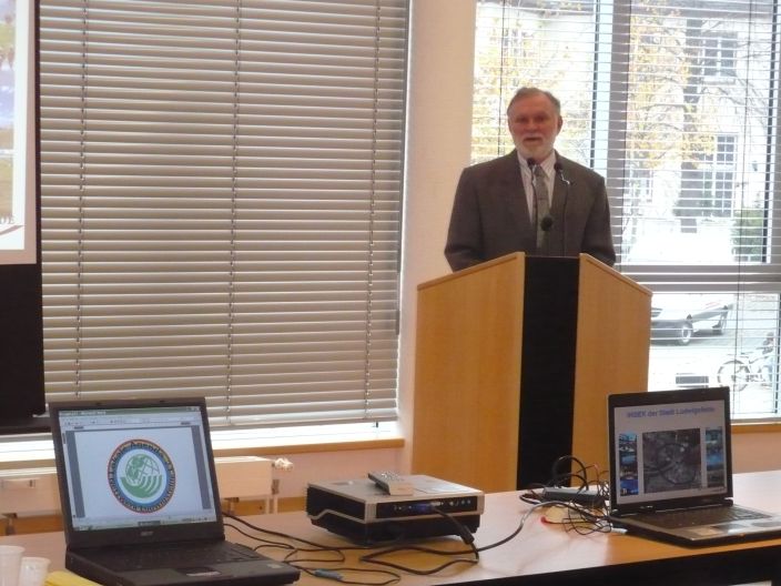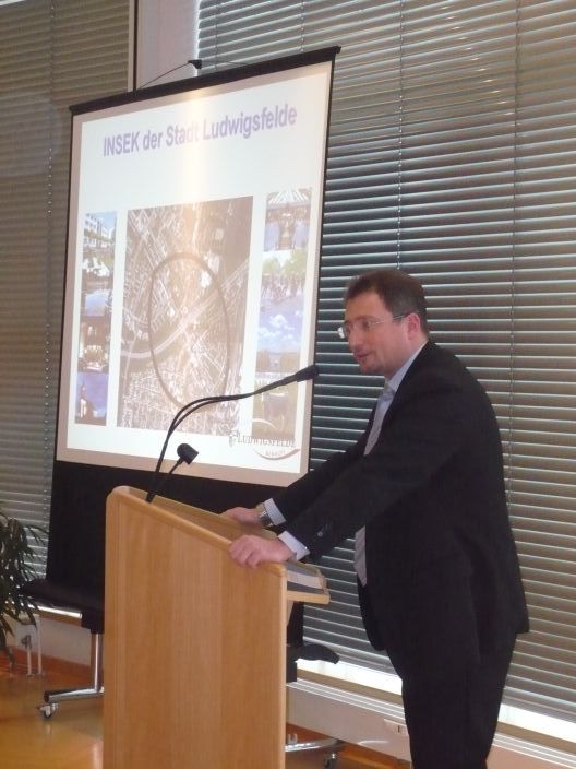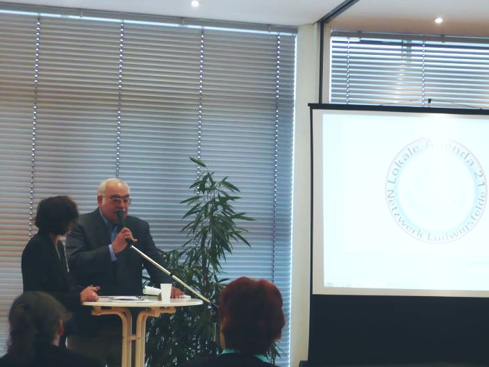 Der Bürgermeister Frank Gerhard bekundet seine Unterstützung den Lokale Agenda 21-Prozess, der 2007/08 in Ludwigsfelde mit dem jetzt bilanzierten und diskutierten Projekt in Gang gesetzt wurde.